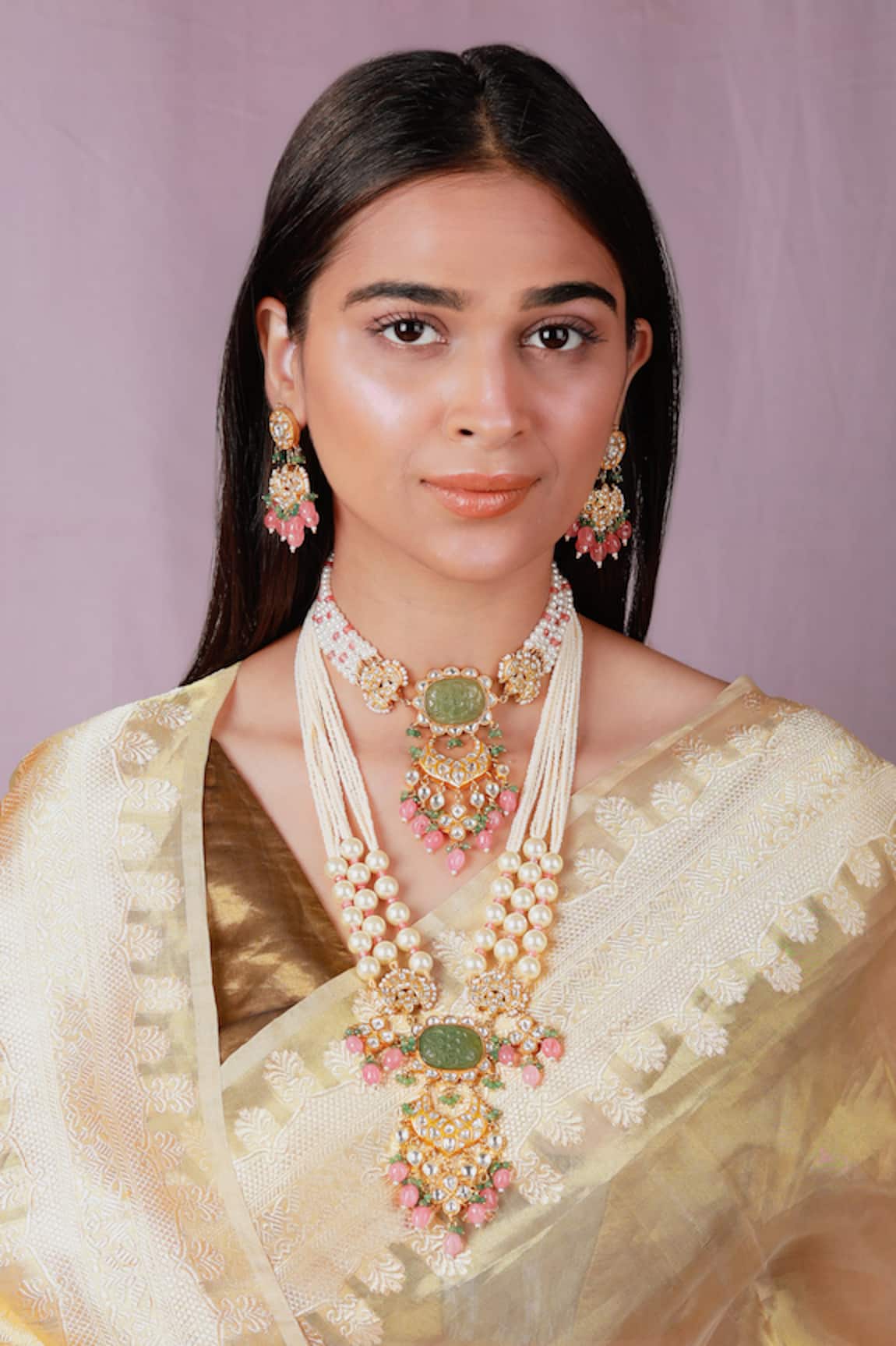 Blossom Jadau Kundan & Stone Embellished Choker & Long Necklace Set