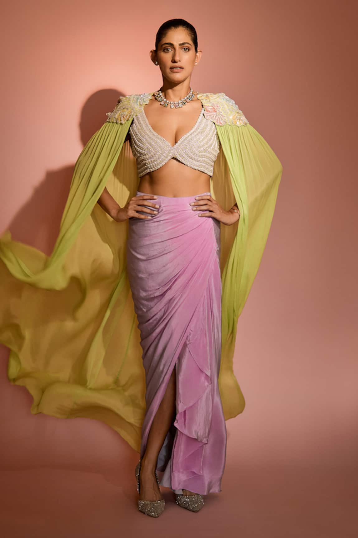 Cleopatra Glow Embroidered Cape Draped Skirt Set