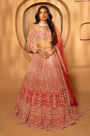 Orange Sequin & Cutdana Embroidered Lehenga Set