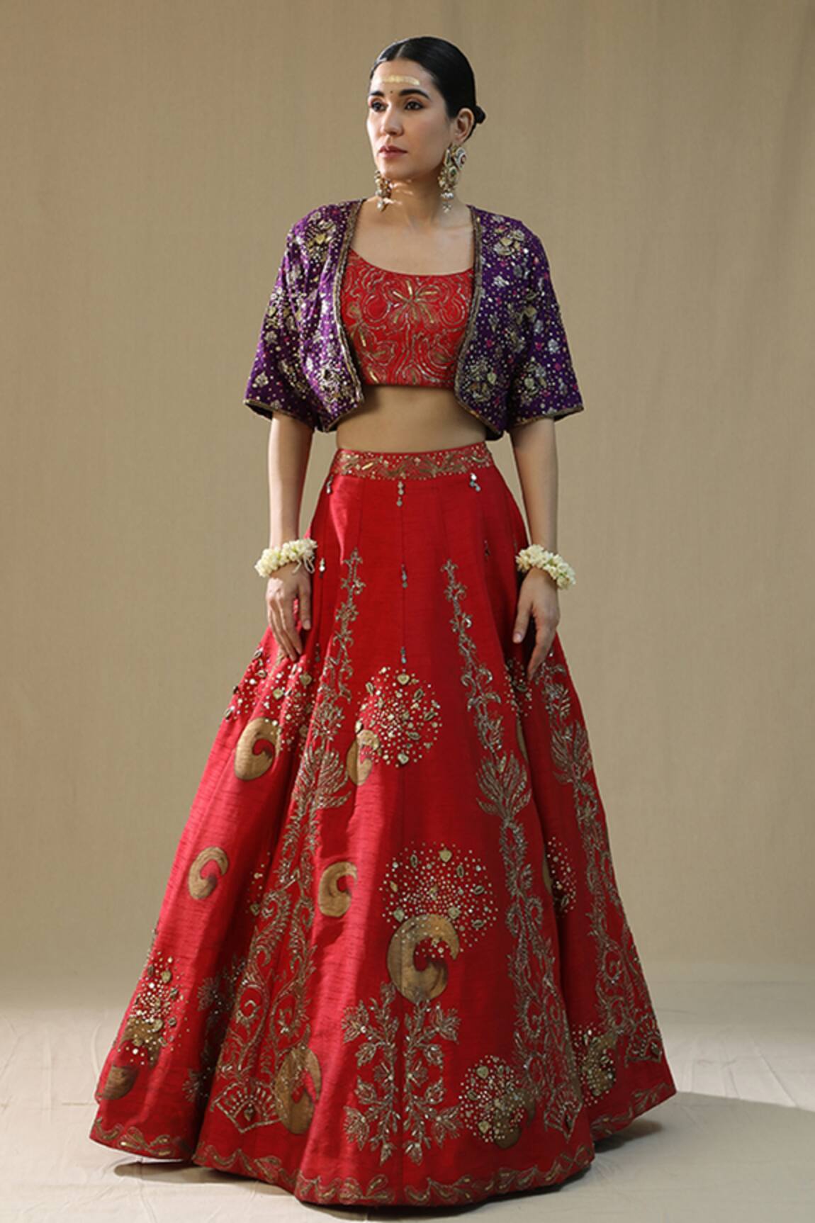 Arpita Sulakshana Red Brushstroke Lehenga Set