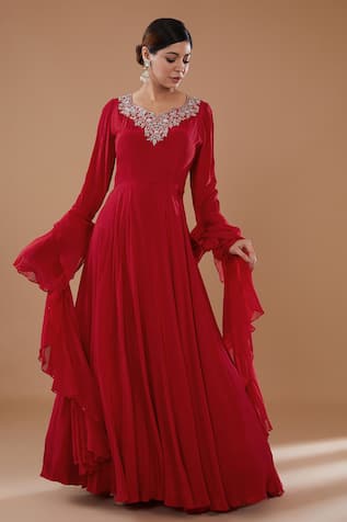 Pearl Floral Embroidered Pre-Draped Saree Gown