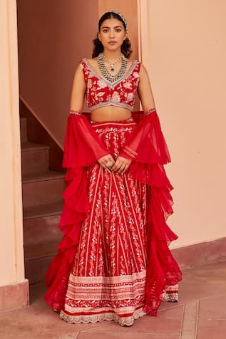 Stripe Pattern Pre-Draped Saree Set with Printed Cape