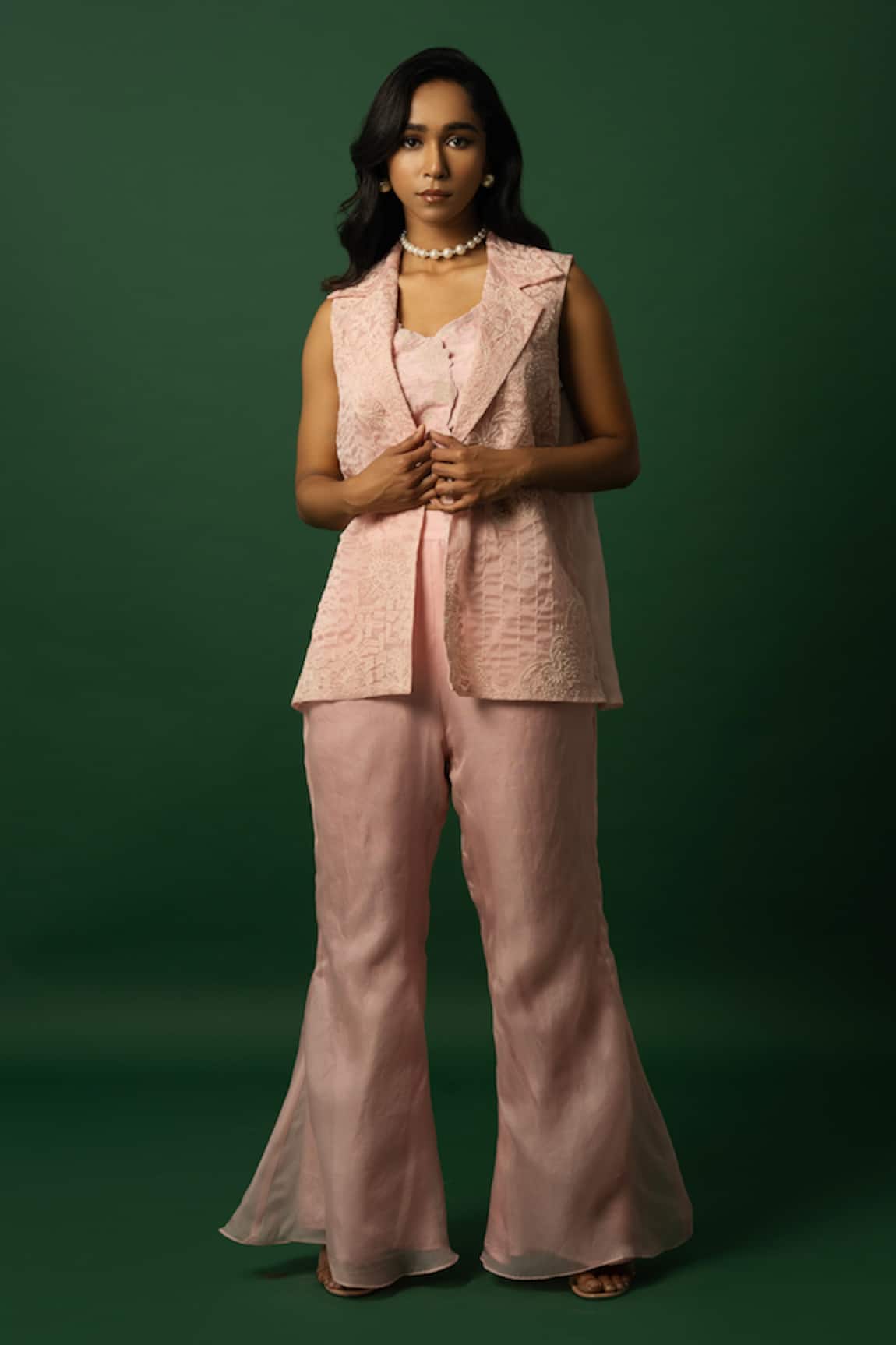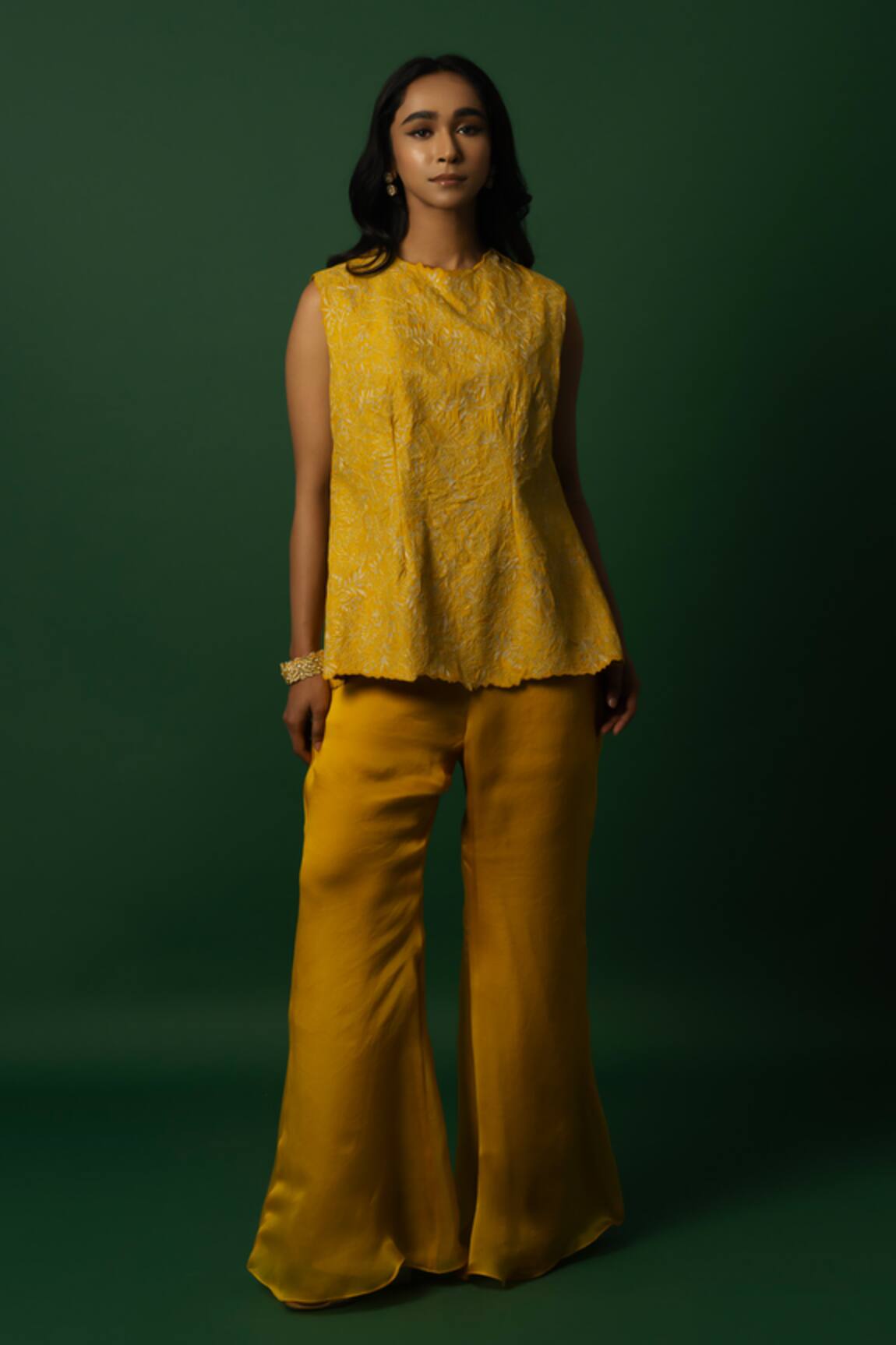 Organza Kaftan & Modal Satin Bell Bottom Pant Set
