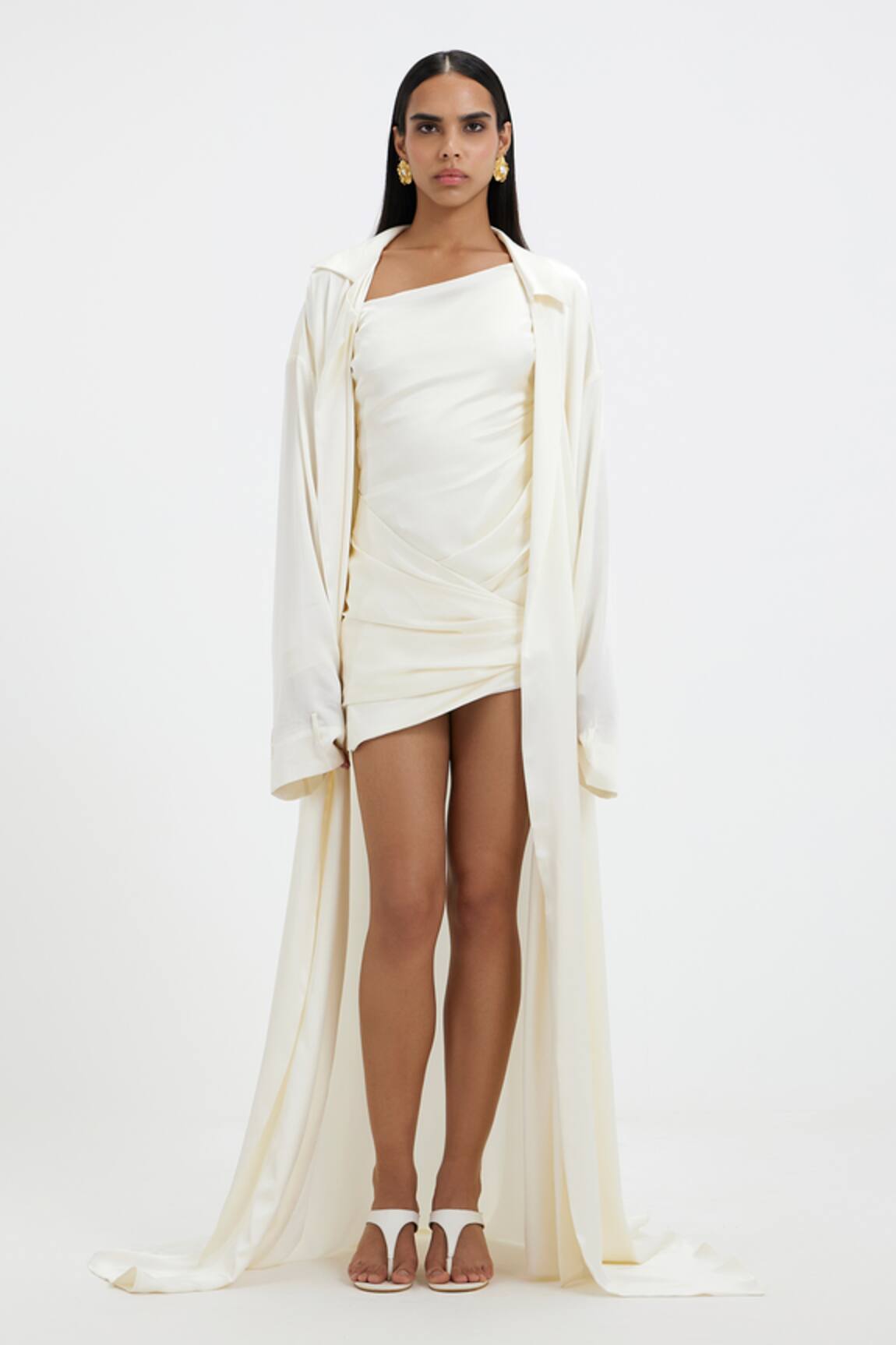 Judy Malai Net Ruched Bodysuit & Skirt Set