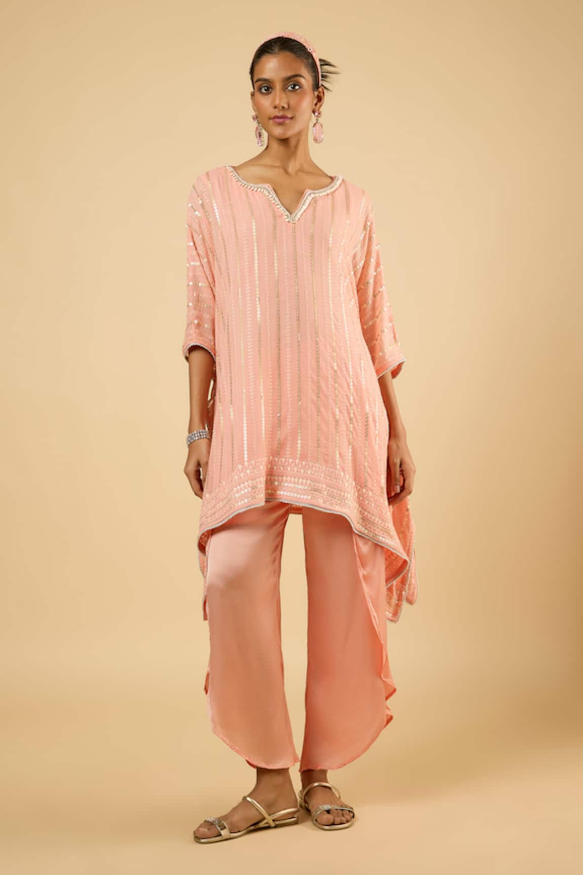 Sequins Embroidered Kaftan Kurta & Pant Set