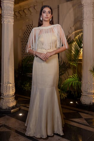 Dori Floral Embroidered High-Low Cape Sharara Set