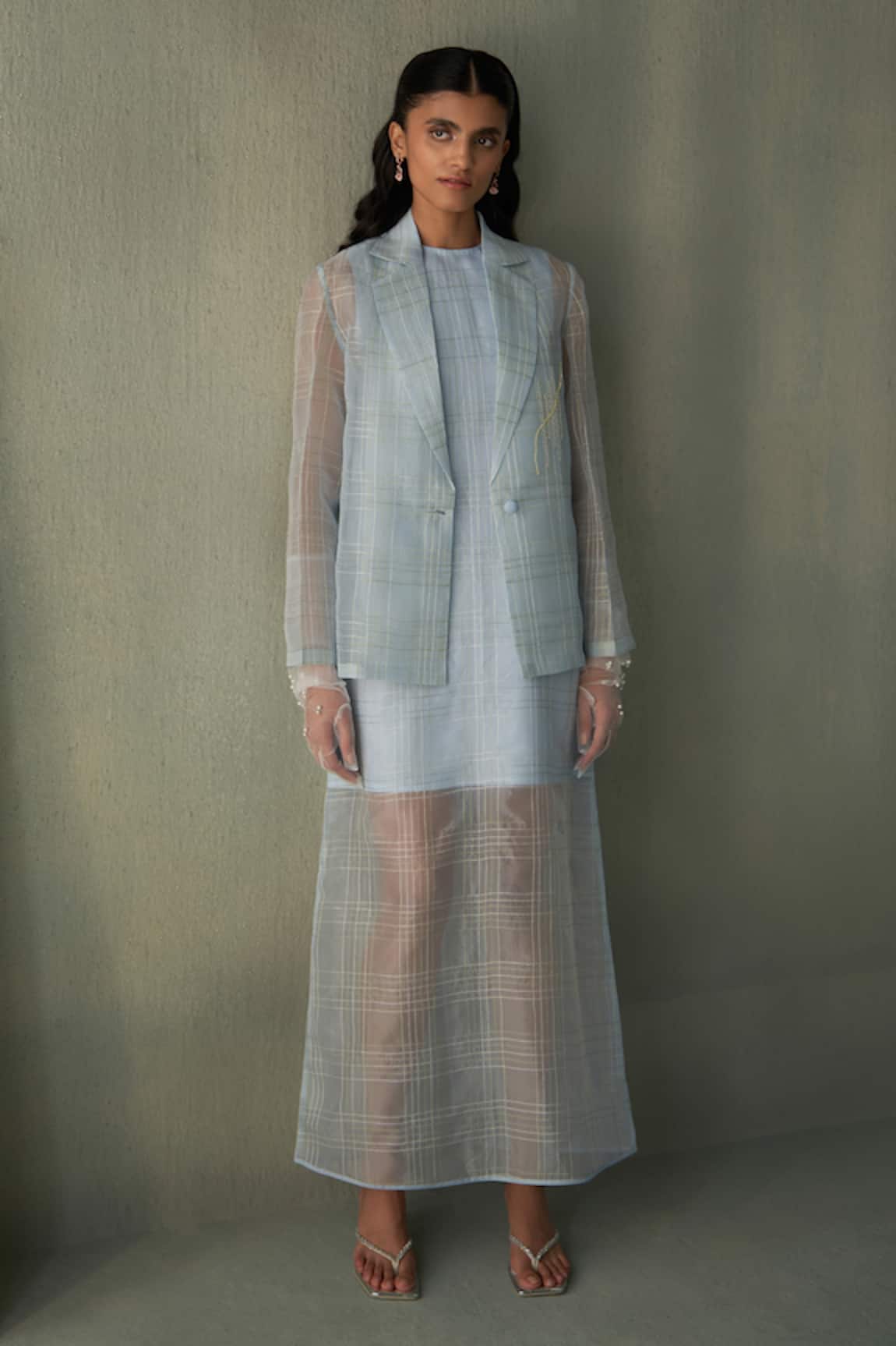 Sky Kantha Stitch Blazer & Dress Set