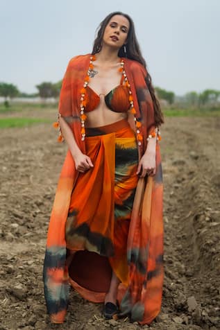 Evara Print Pre-Draped Lehenga Saree & Blouse Set