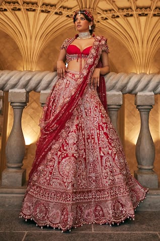 Zardozi Embroidered Floral Vine Bridal Lehenga Set