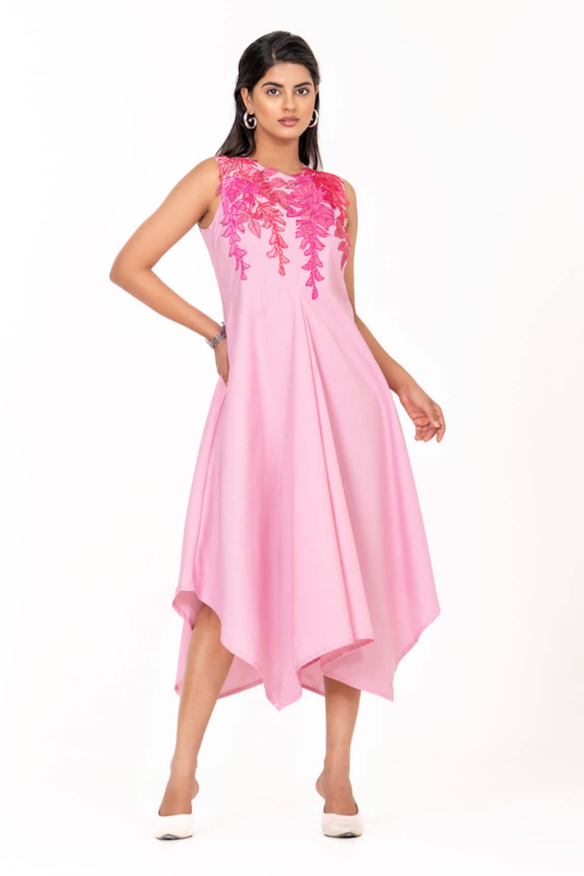 Resham Embroidered Asymmetrical Midi Dress