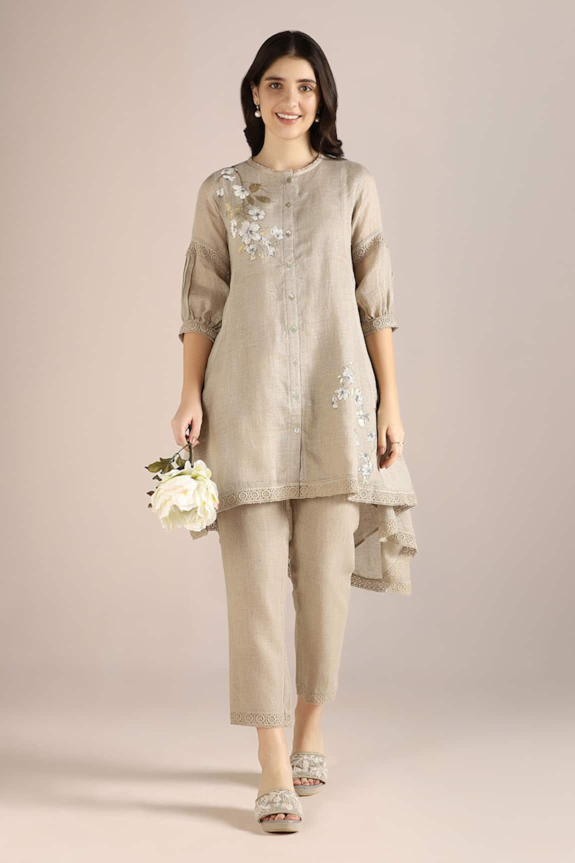 Embroidered Linen Top & Pant Set