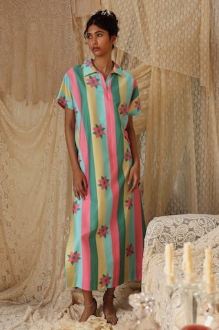 Mata Ortiz Hand Print Drawstring Midi Dress