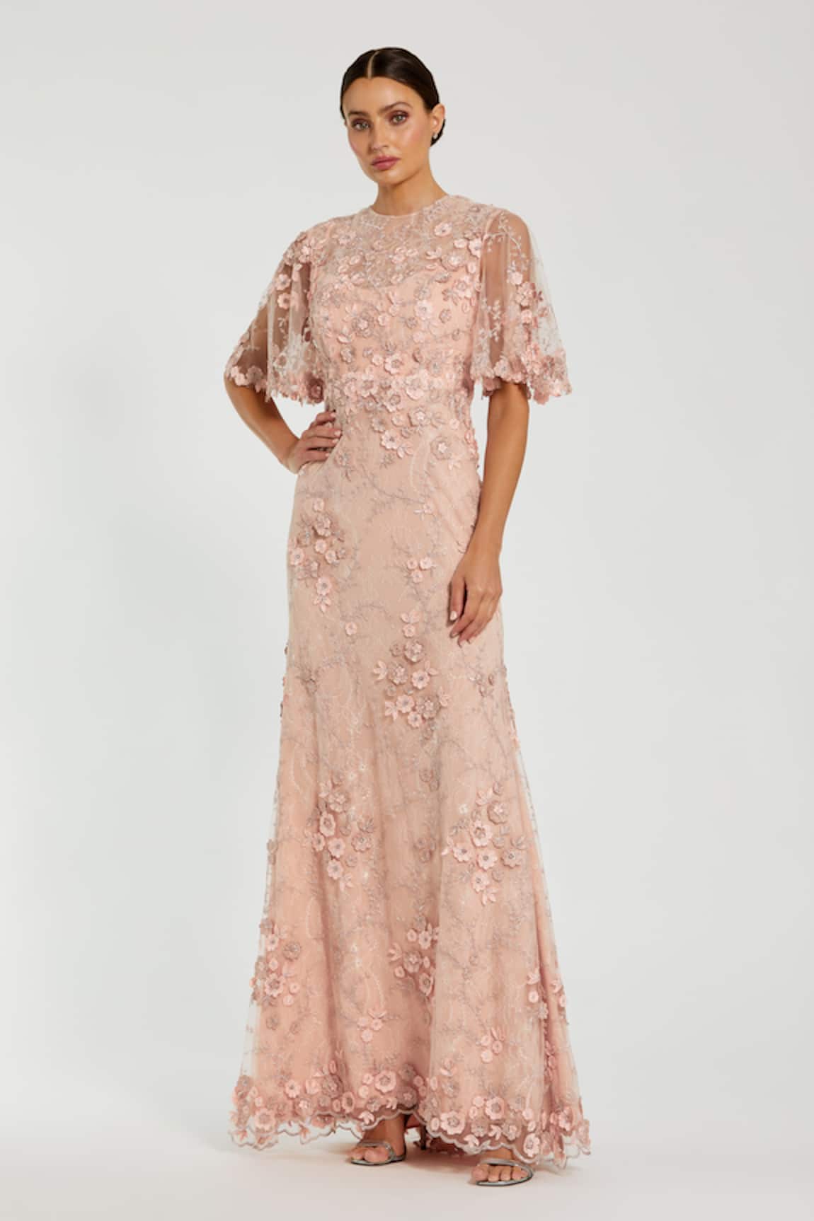 Floral Hand Embroidered Scallop Hem Gown