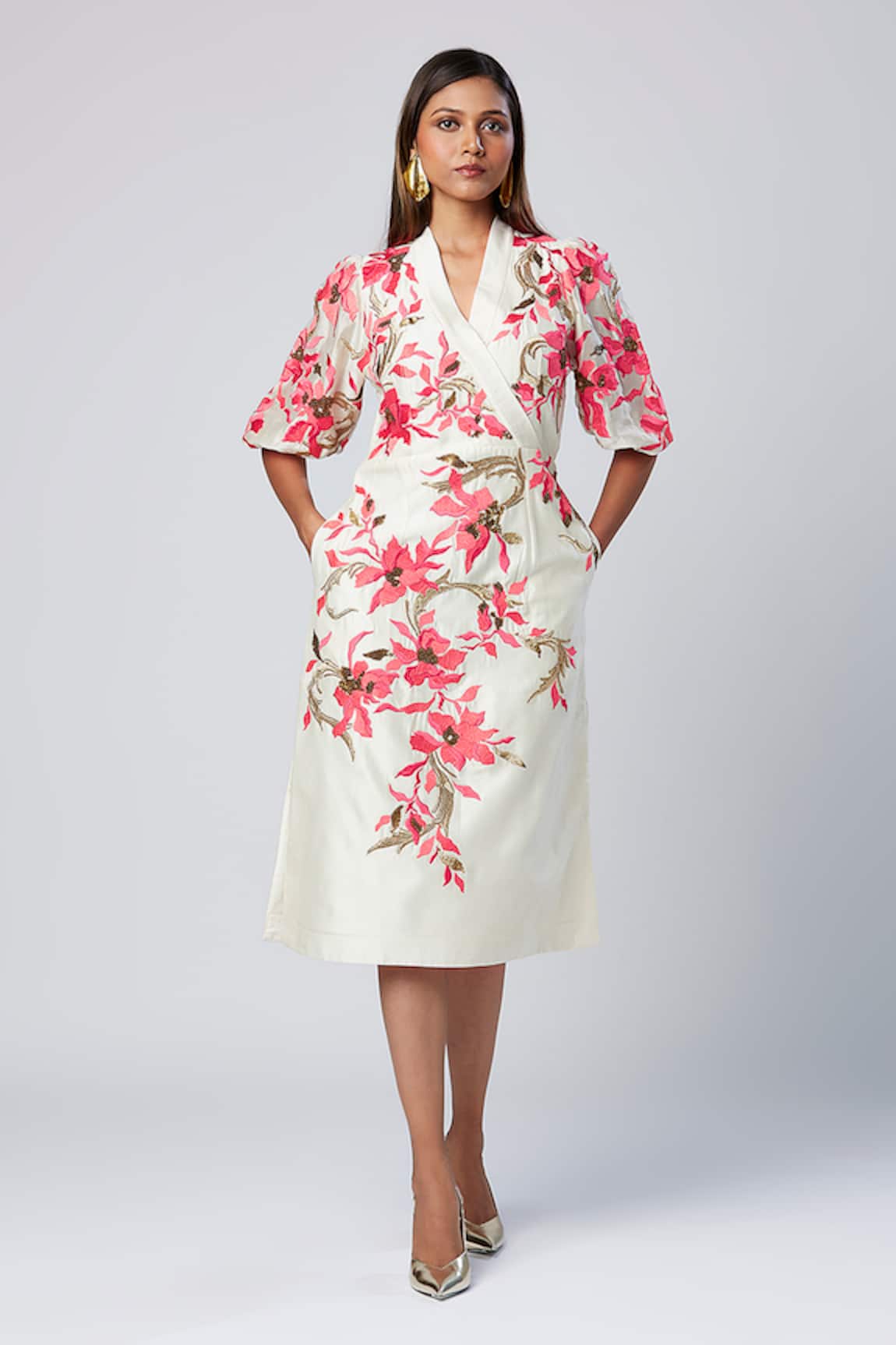 Kubra Floral Embroidered Peplum Tunic & Pant Set