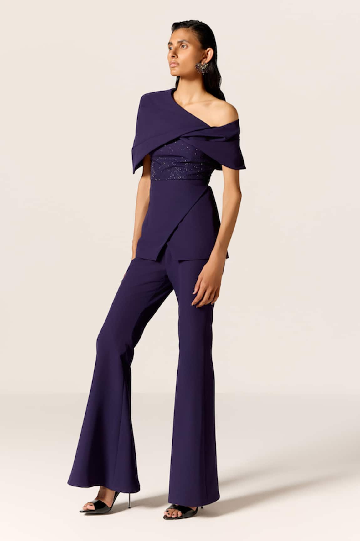 Colorblocked Draped Top With Trumpet Pant