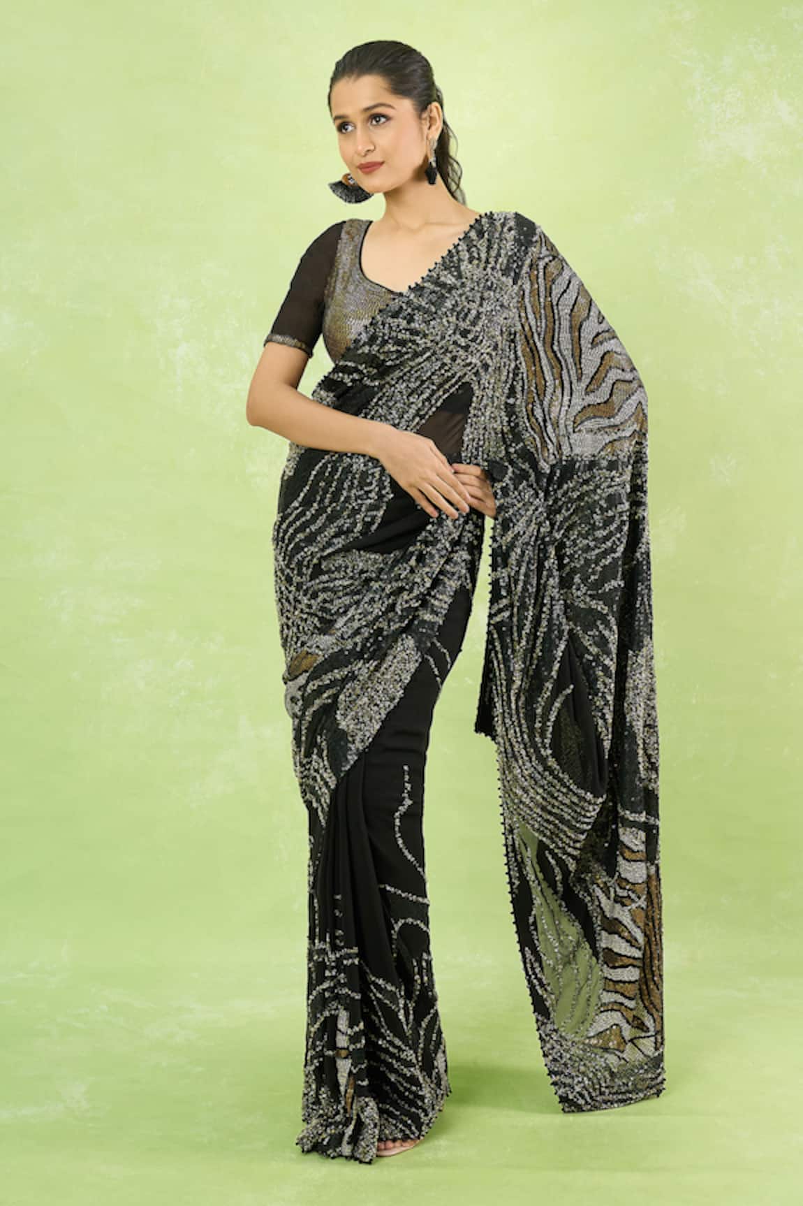 Striped Sequin Saree With Blouse