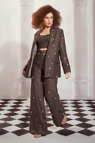 Holographic Embroidered Blazer & Pant Set