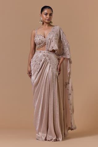 Ambrosia Border Embroidered Pre-Draped Saree With Bustier