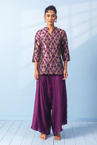 Purple Banarasi Silk Woven Kurta Set
