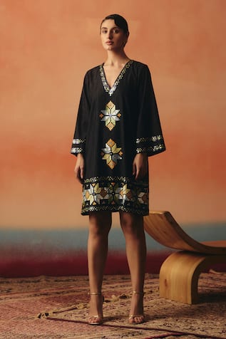 Dawn Floral Embroidered Short Kurta With Petal Pant