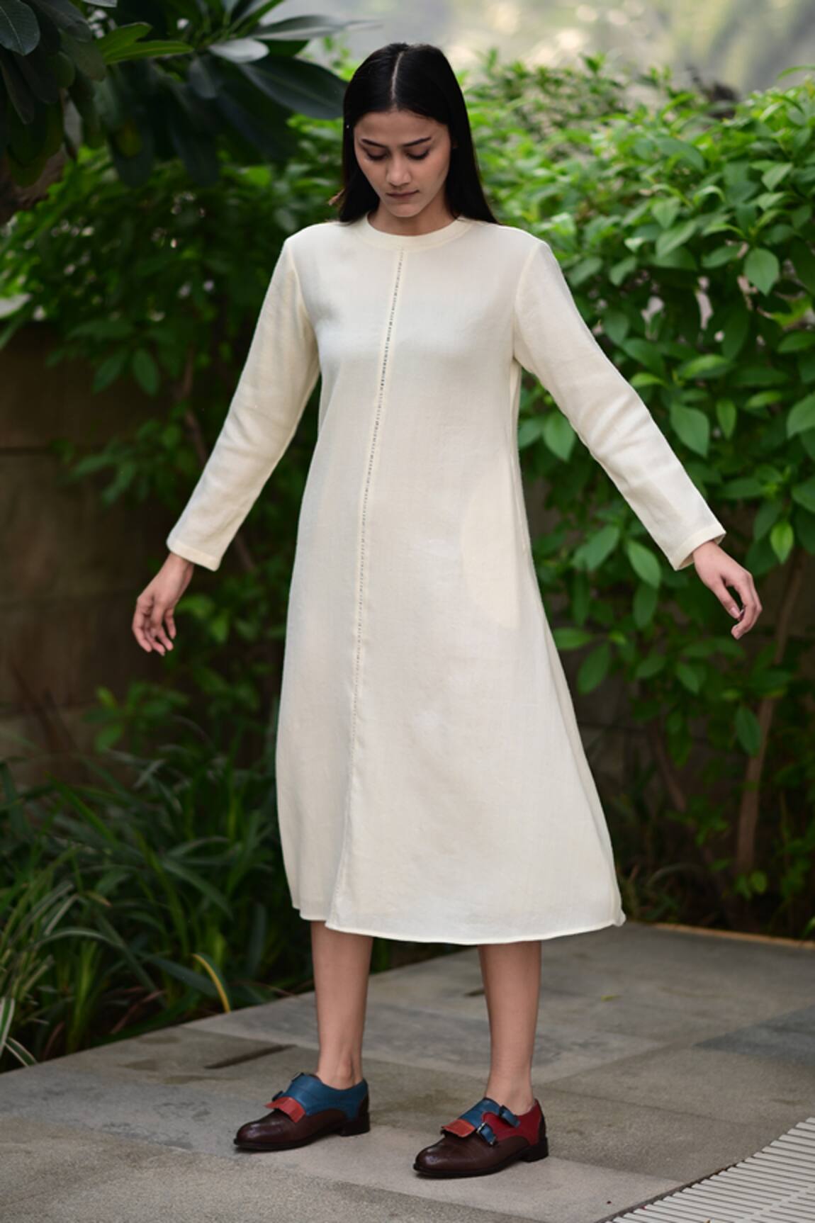 Cream Solid Midi Dress