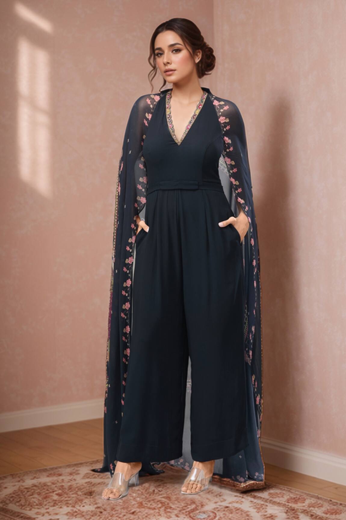 Rajat K Tangri Floral Print Cape Jumpsuit