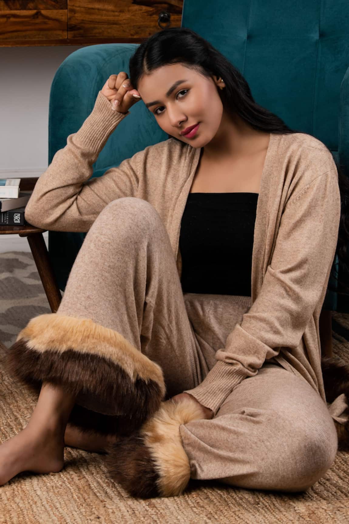 Faux Fur Cardigan & Pant Set