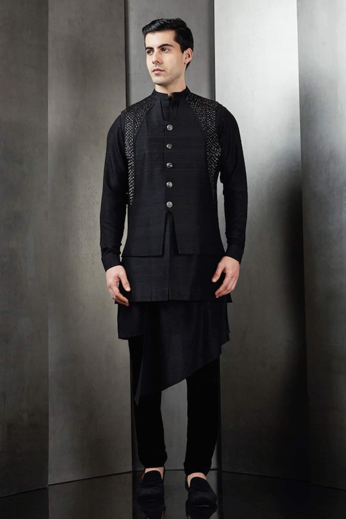 Asymmetric Draped Silk Kurta & Pyjama Set