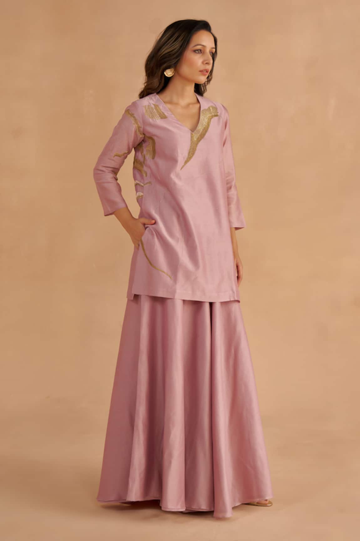Chanderi Zari Placement Embroidered Kurta & Sharara Set