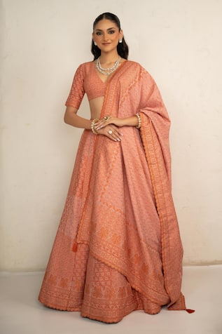 Hiraya Floral Jaal Woven Bridal Lehenga Set