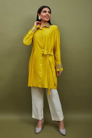 Pleated Shirt Tunic With Pant