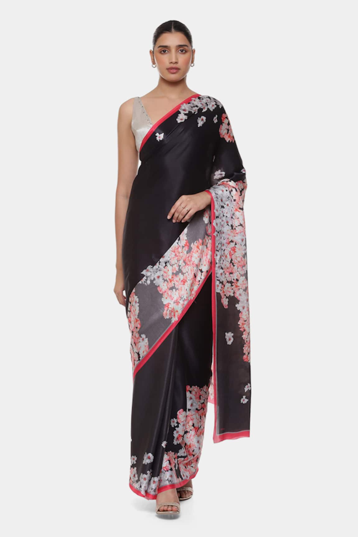 Floral Sequin Embroidered Saree With Running Blouse