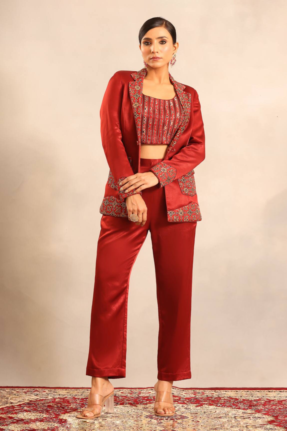 Ajrakh Embroidered Blazer, Blouse & Pant Set