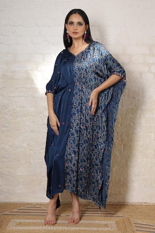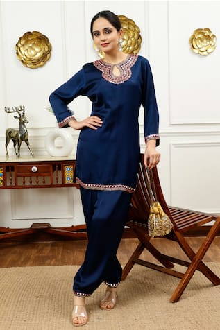 Ajrakh Hand Print & Embroidered Shirt Pant Set