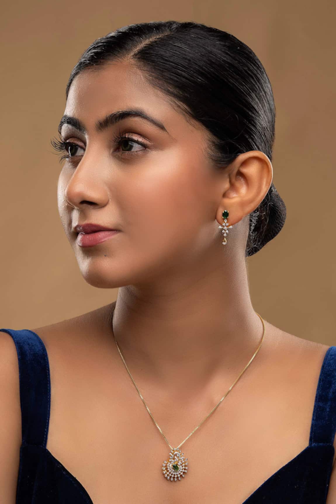 Treta Stone Studded Pendant & Earring Set