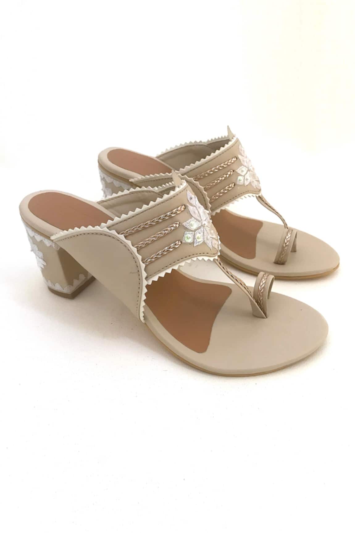 Magic Cutwork Bordered Kolhapuri Block Heels