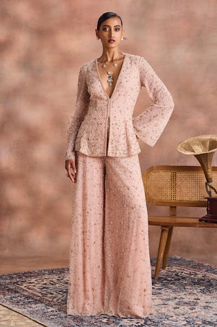 Raspberry Wine Embroidered Skirt & Blouse Set