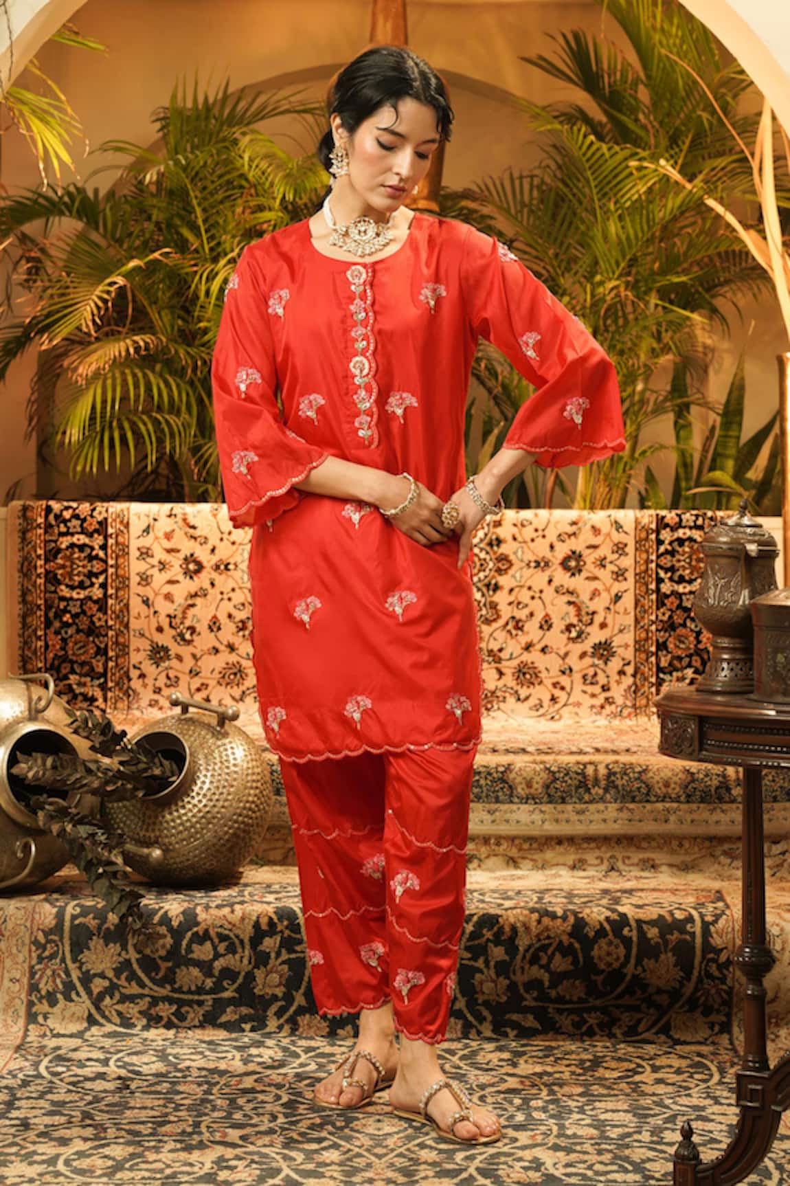 Silk Hand-Embroidered Kurta & Pant Set