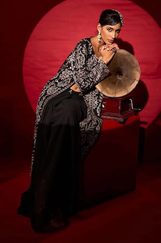 Pataka Embellished Cape With Woven Pant