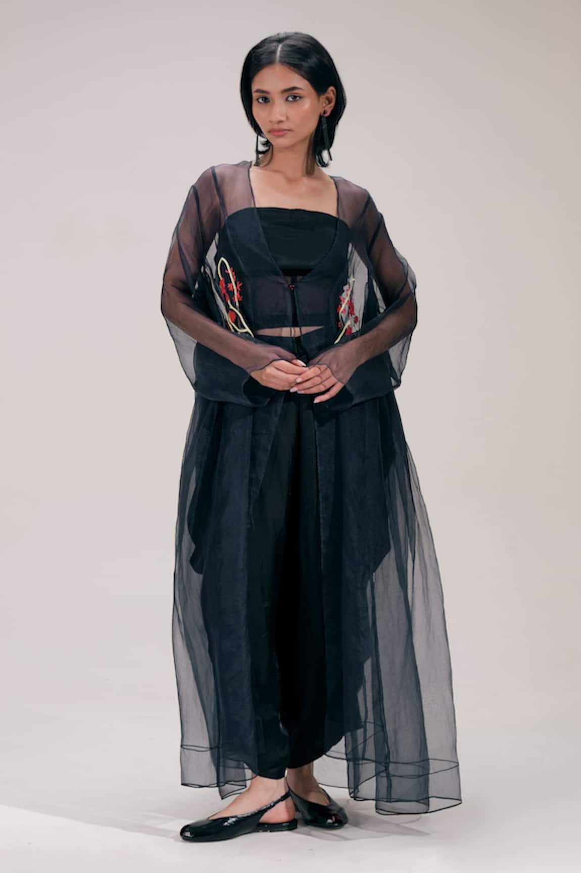 Bloomsy Draped Skirt With Hand Embroidered Blouse