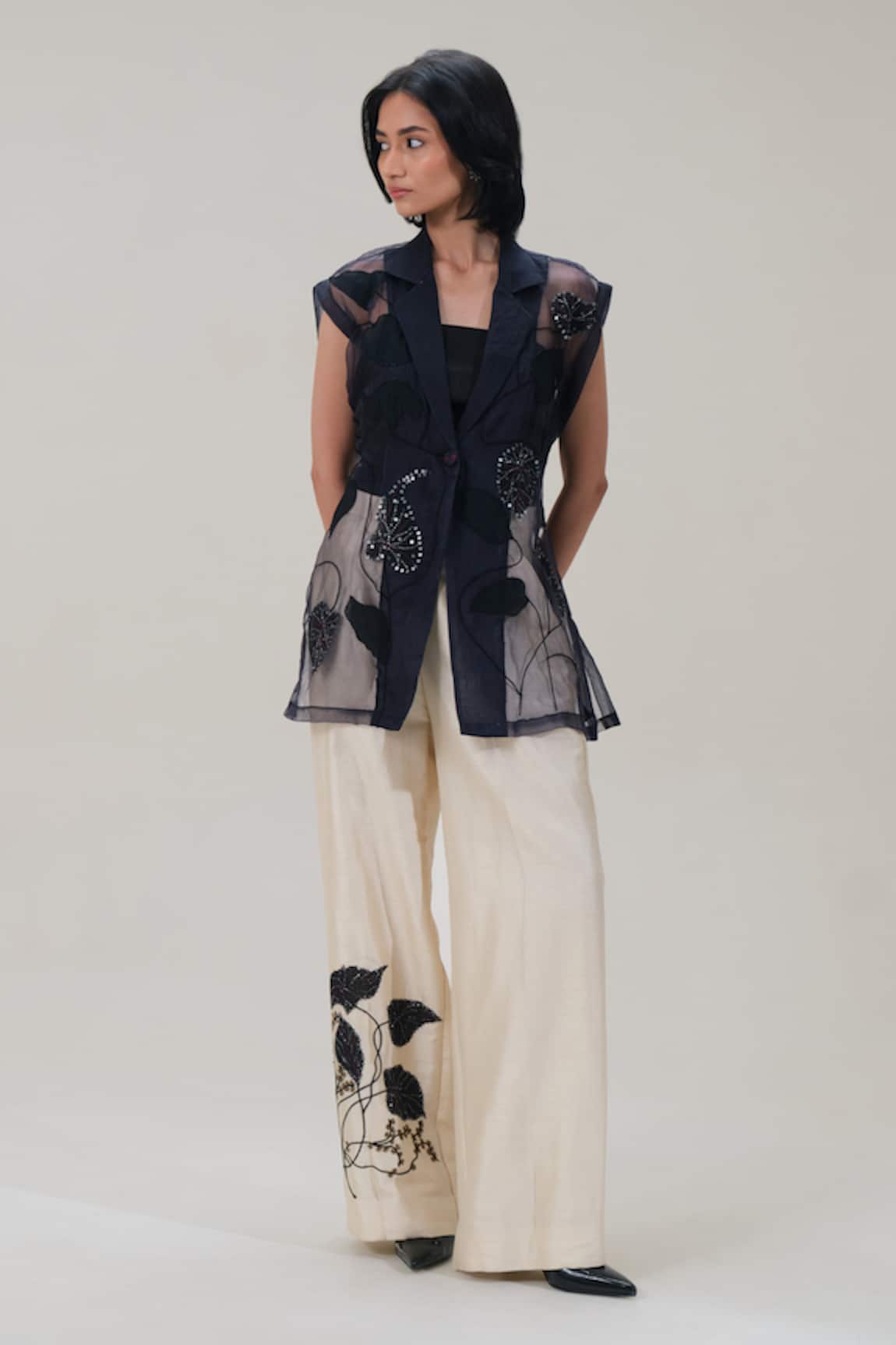 Chanderi Overlay Wrap Kurta With Leaf Pattern