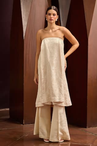 Jacquard Peplum Top & Asymmetric Skirt Set