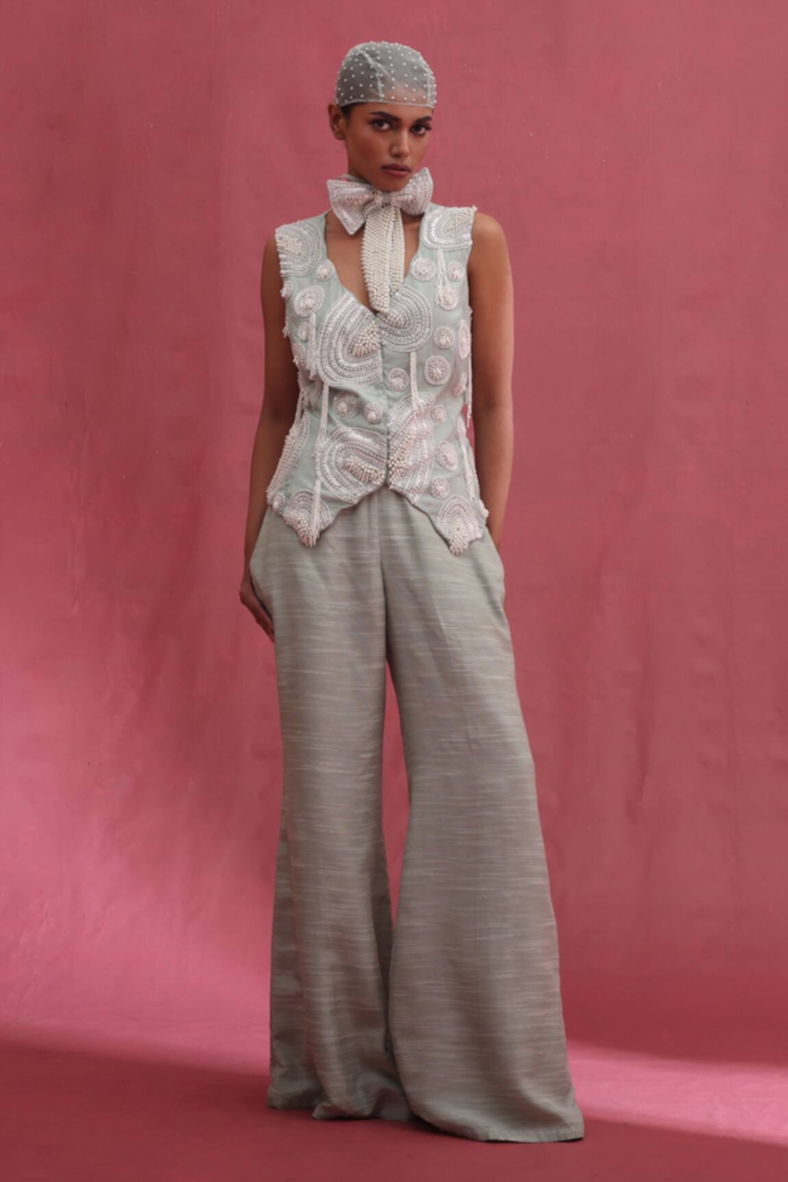 Mint Organza Cape Bustier Pant Set