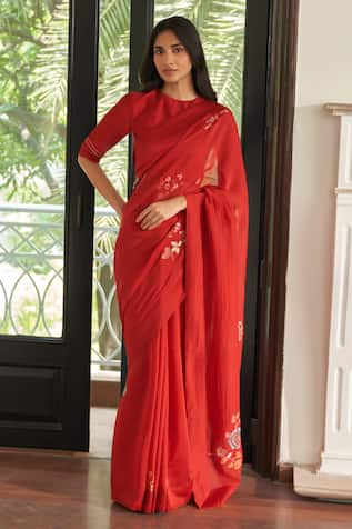 Poppy Embroidered Saree With Unstitched Blouse Piece