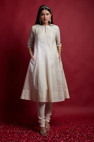 Beige Handwoven Chanderi Kurta & Pant Set