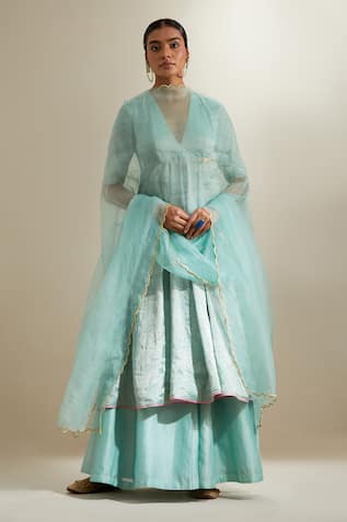 Zari Silk Kurta & Chanderi Kalidar Sharara Set