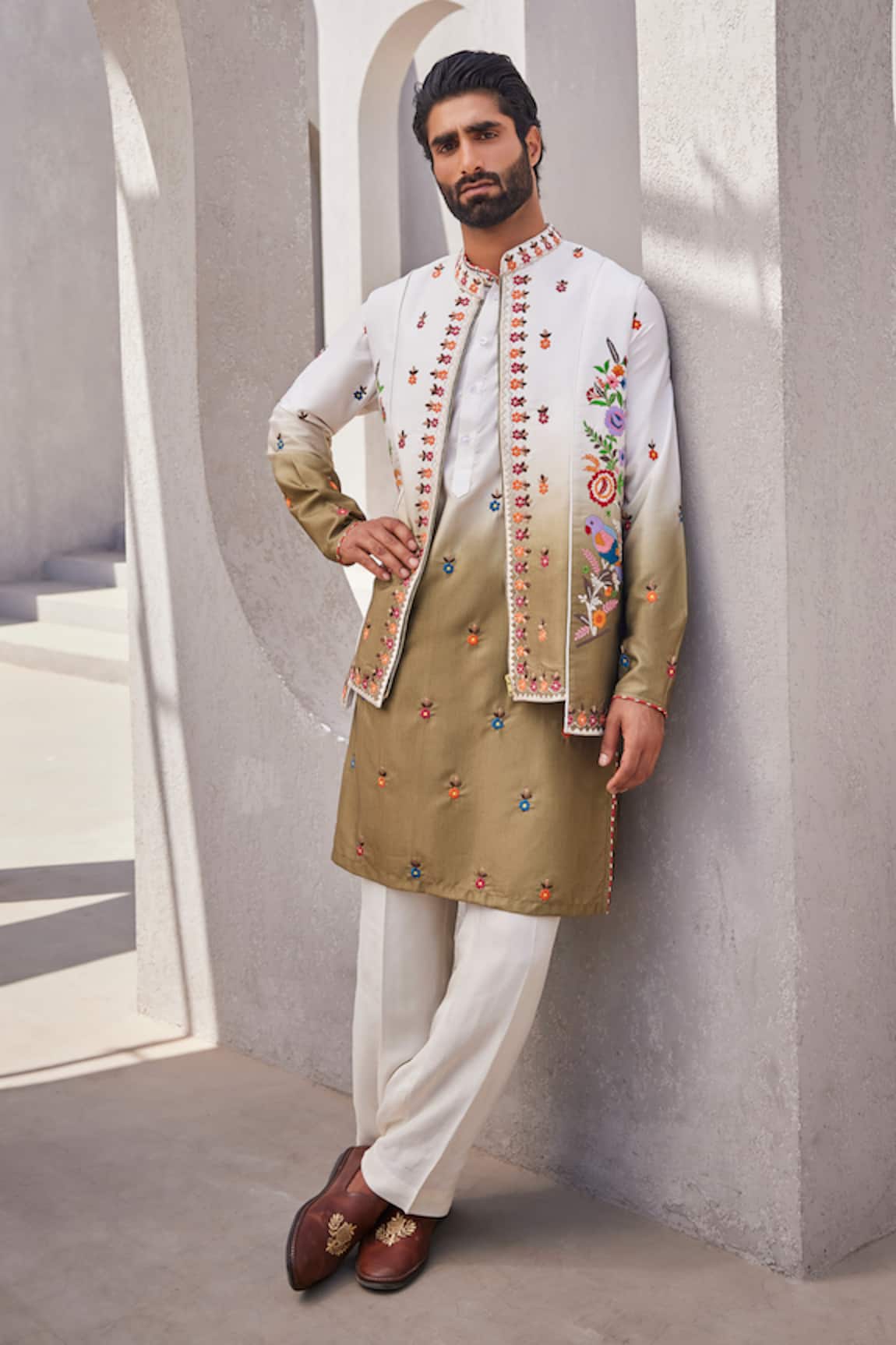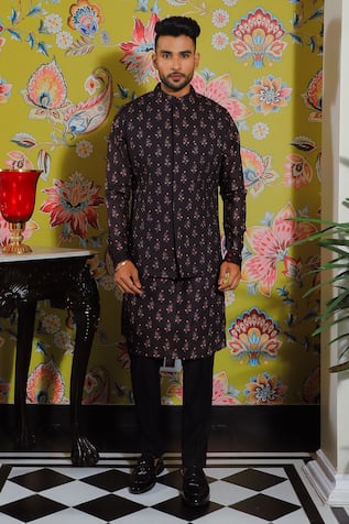 Abstract Print Wrap Robe Jacket With Cupro Trouser