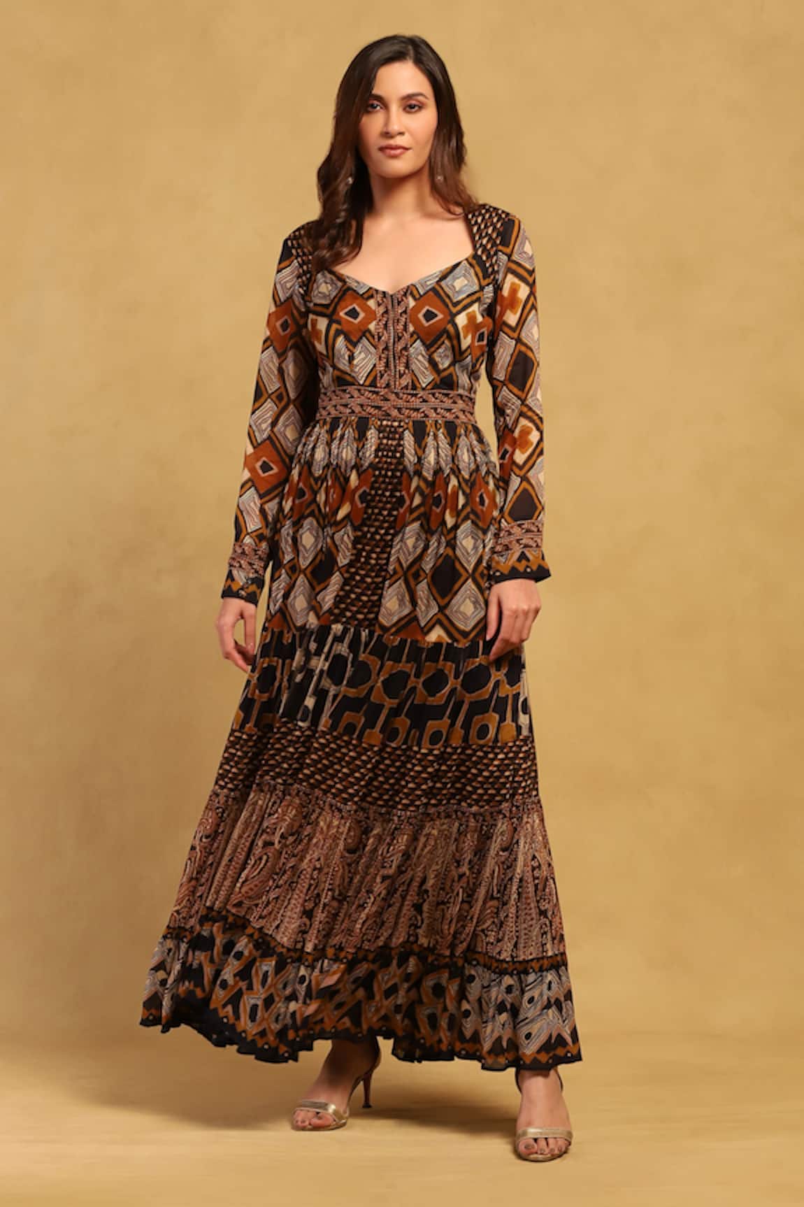 Niagra Abstract Mosaic Print Layered Kurta Set