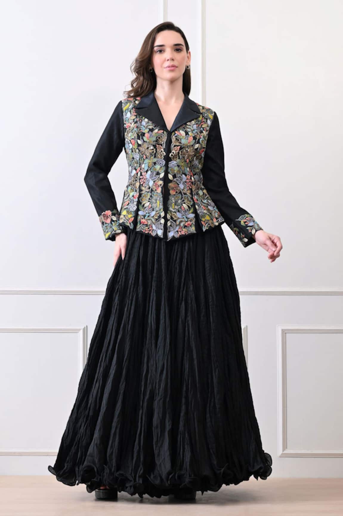 Embroidered Kaftan Jacket & Tiered Ruffle Skirt Set