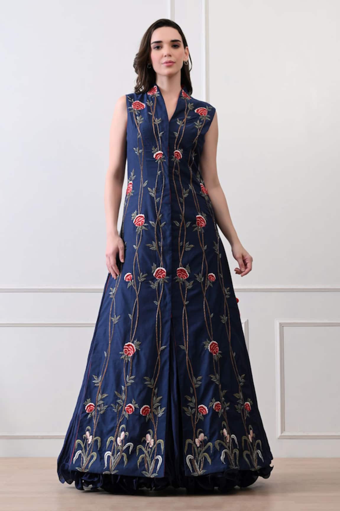 Regal Tapestry Embroidered Gown With Detachable Cape